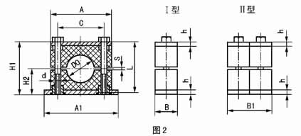 | 注:當(dāng)管路介質(zhì)壓力較高時,可選用B系列I型和II型,但需縮小相鄰管夾間距。 | ||||||||||||||