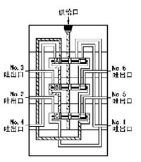 6、流入的潤滑劑推動活塞B向右運動、右腔的潤滑劑壓向NO.5吐出口,經外部配管送向潤滑點。當活塞B移動到至右極限時活塞A左腔開始進入潤滑劑。