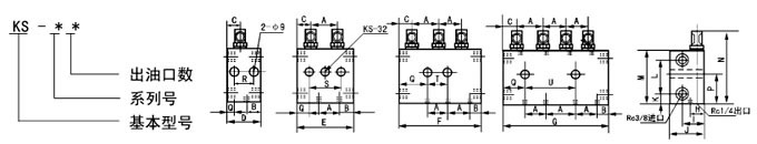 一、概述 KS系列雙線分配器適用于公稱壓力為20MPa雙線式干油集中潤滑系統中,作為一種計量給油裝置它在兩條供油主管交替的供油壓力作用下,直接由供油壓力控制活塞動作給油,完成向潤滑點定量分配潤滑脂的功能。 該系列雙線分配器出油口均布在底面,分配器活塞正反向動作均從同一給油口排出潤滑脂,還可以從指示桿的動作直接觀察分配器的工作情況,同時還可通過調螺釘在規定的范圍內方便地調整各個出油口的給油量。